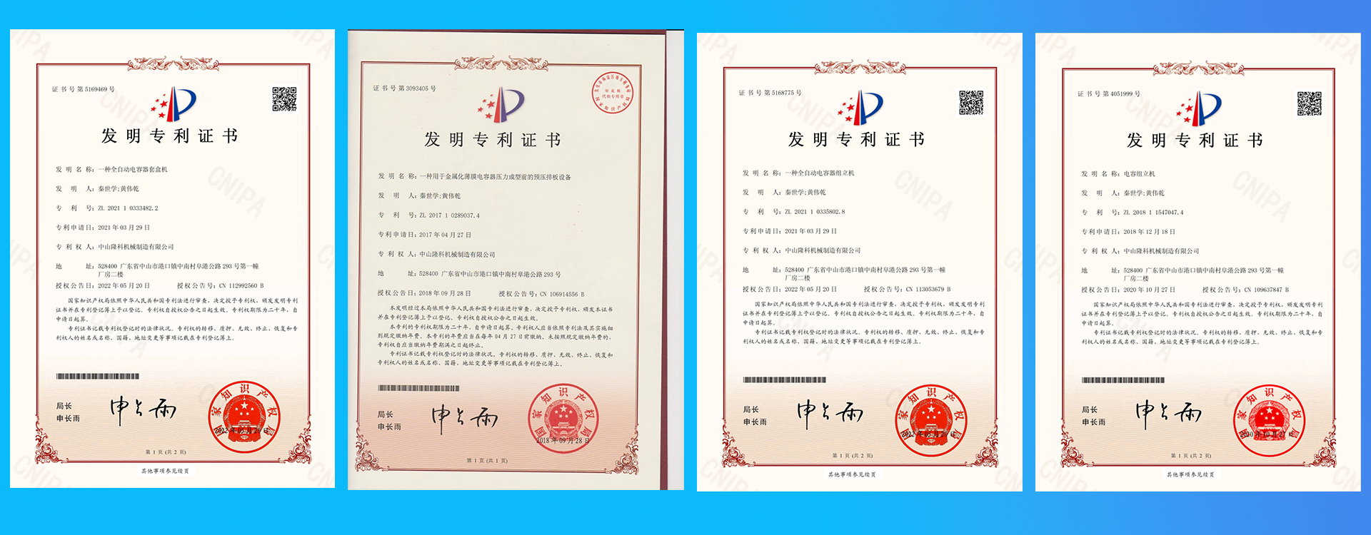 中山隆科機械制造有限公司成立于2012年10月, 注冊資金100萬元,主要為生產金屬化薄膜電容器廠家提供專用設備,公司廠房面積1400平方米。 本公司有專業研發團隊20人,研發技術能力雄厚, 具有自己的創新理念,于2017年獲得廣東省高新技術企業,榮獲國家發明專利4項。 公司不斷致力于電容器設備技術的應用與開發, 力求以高質量,高科技,最可靠的設備提供給更多 的用戶。 公司更重視與客戶的溝通,為客戶提供完 善的售前,售中和售后服務。